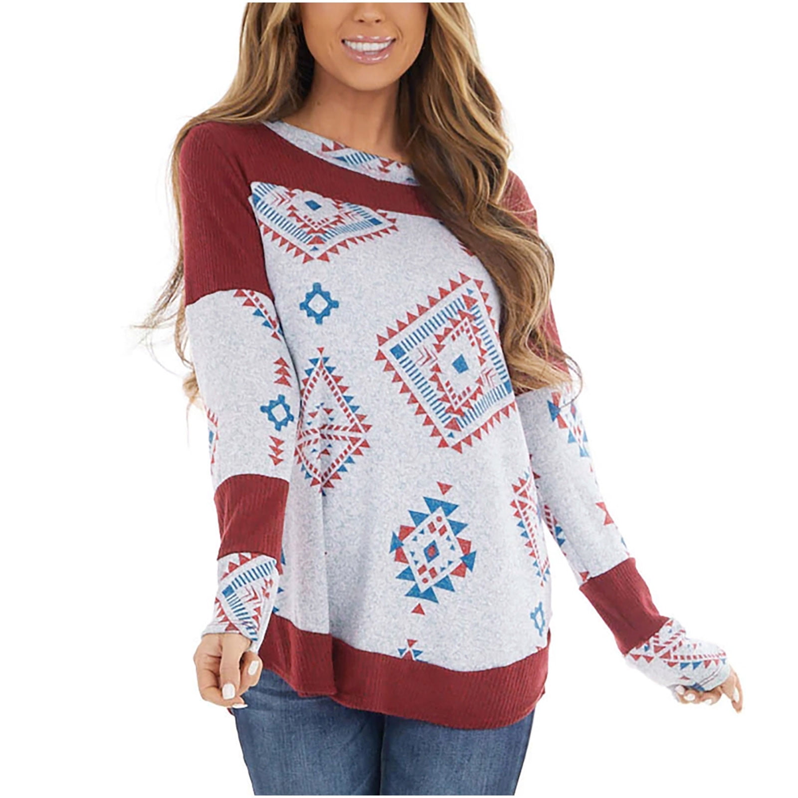 Long Sleeve Shirts For Women Long Sleeve Workout Shirts For Women Women Fashion Blouse Geometric Patterns Long Sleeved O Neck Stitching Solid Color Cuff Tops Flannel Shirts For Women White L Walmart Com